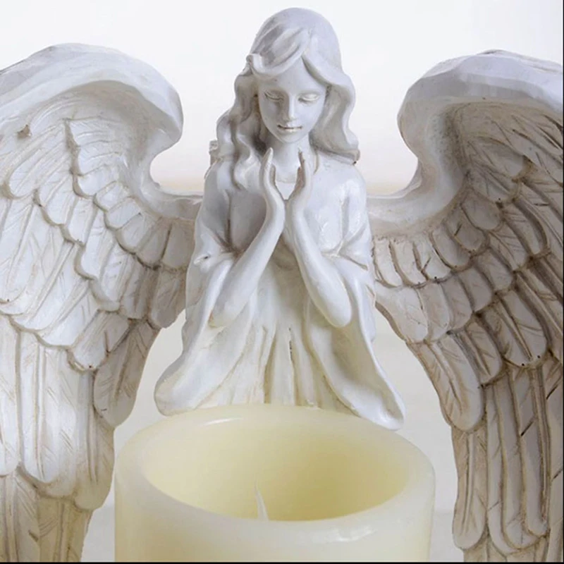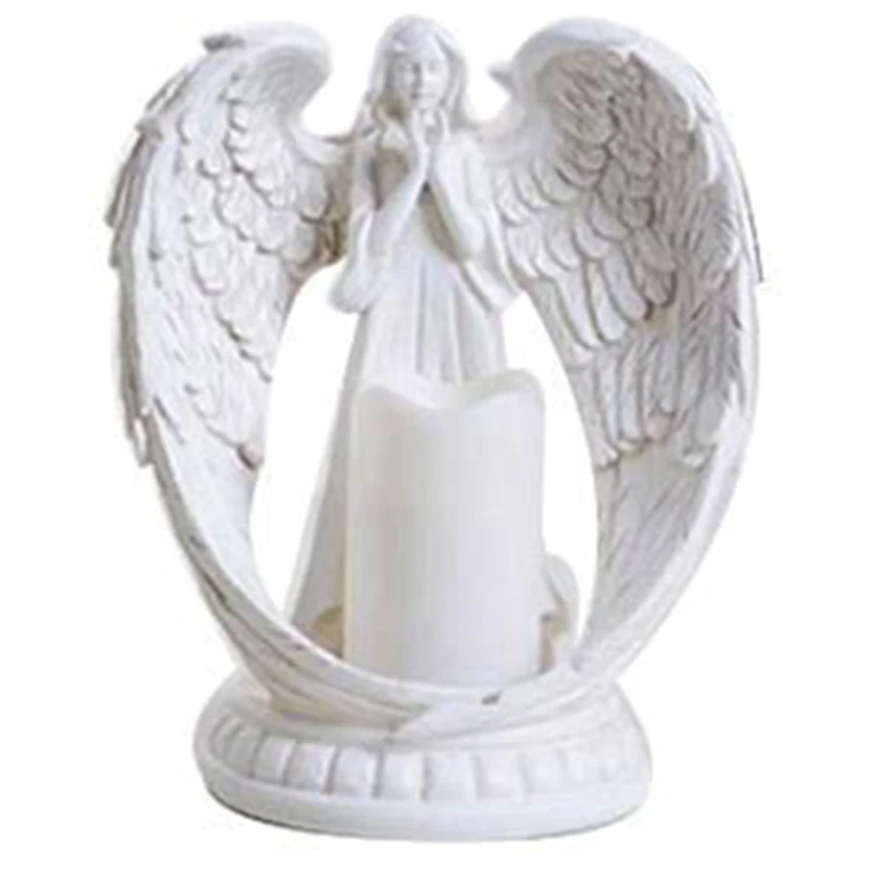 Creative Resin Angel Figurines Electronic Candlestick Crafts Home Decor Angel Miniature Candle Hold
